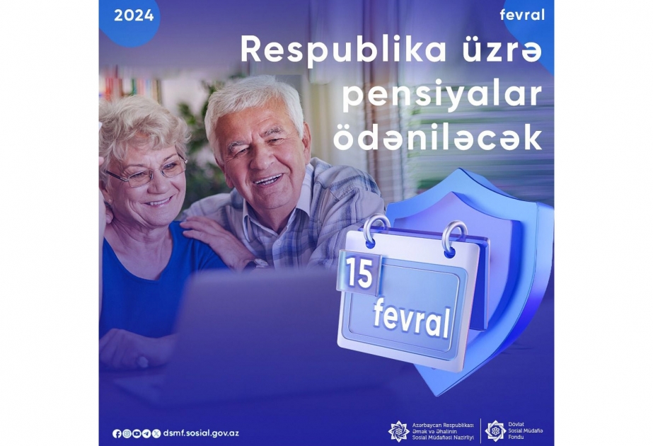 Əmək və Əhalinin Sosial Müdafiəsi Nazirliyinin tabeliyindəki Dövlət Sosial Müdafiə Fondu tərəfindən fevralın 15-də respublika üzrə pensiyaların tam ödənilərək yekunlaşdırılması nəzərdə tutulub.