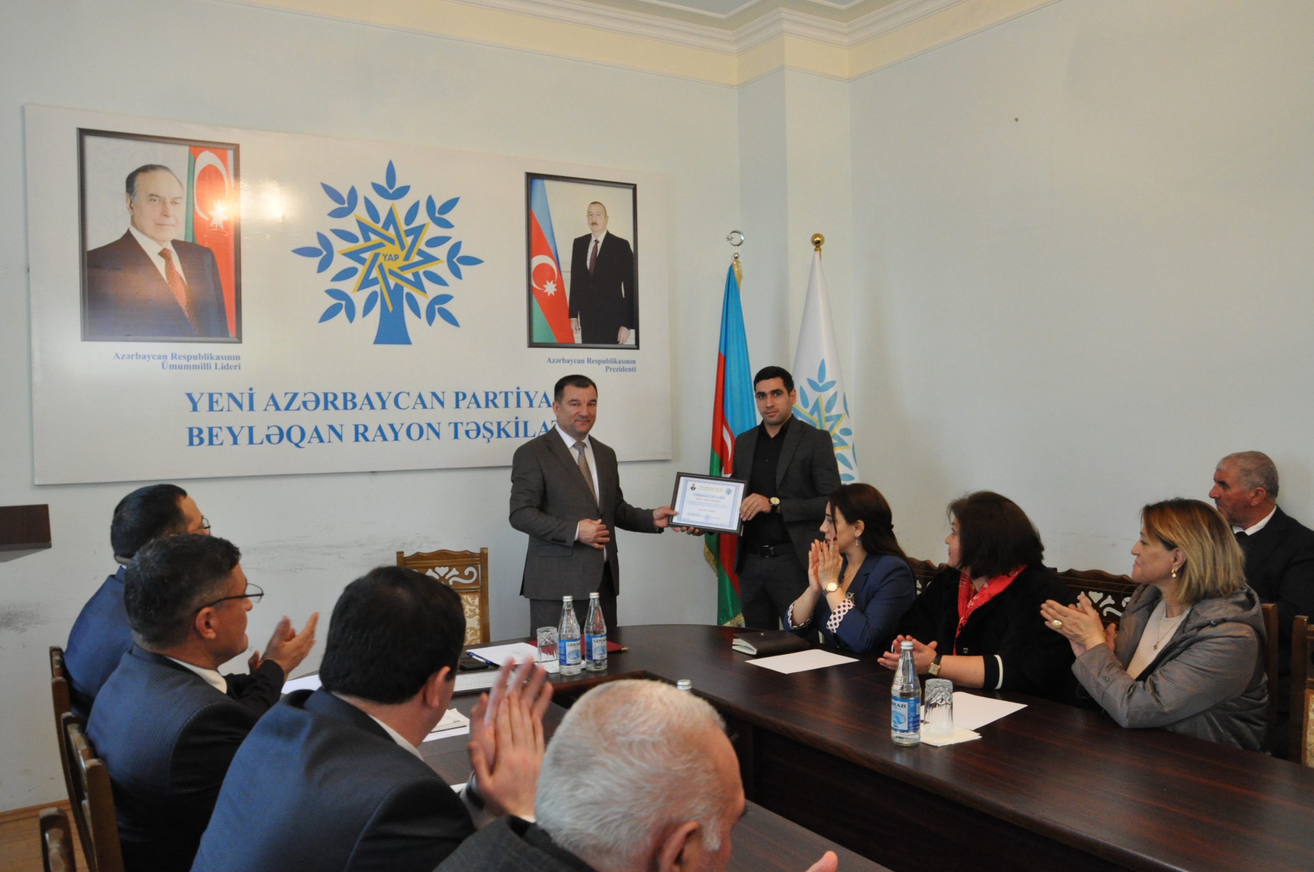 Tədbirin sonunda bir qrup gəncə yeni partiya vəsiqələri, bir qrup gəncə isə Rayon təşkilatının ictimai siyasi həyatında fəal iştirakına görə Təşəkkürnamə təqdim edildi.