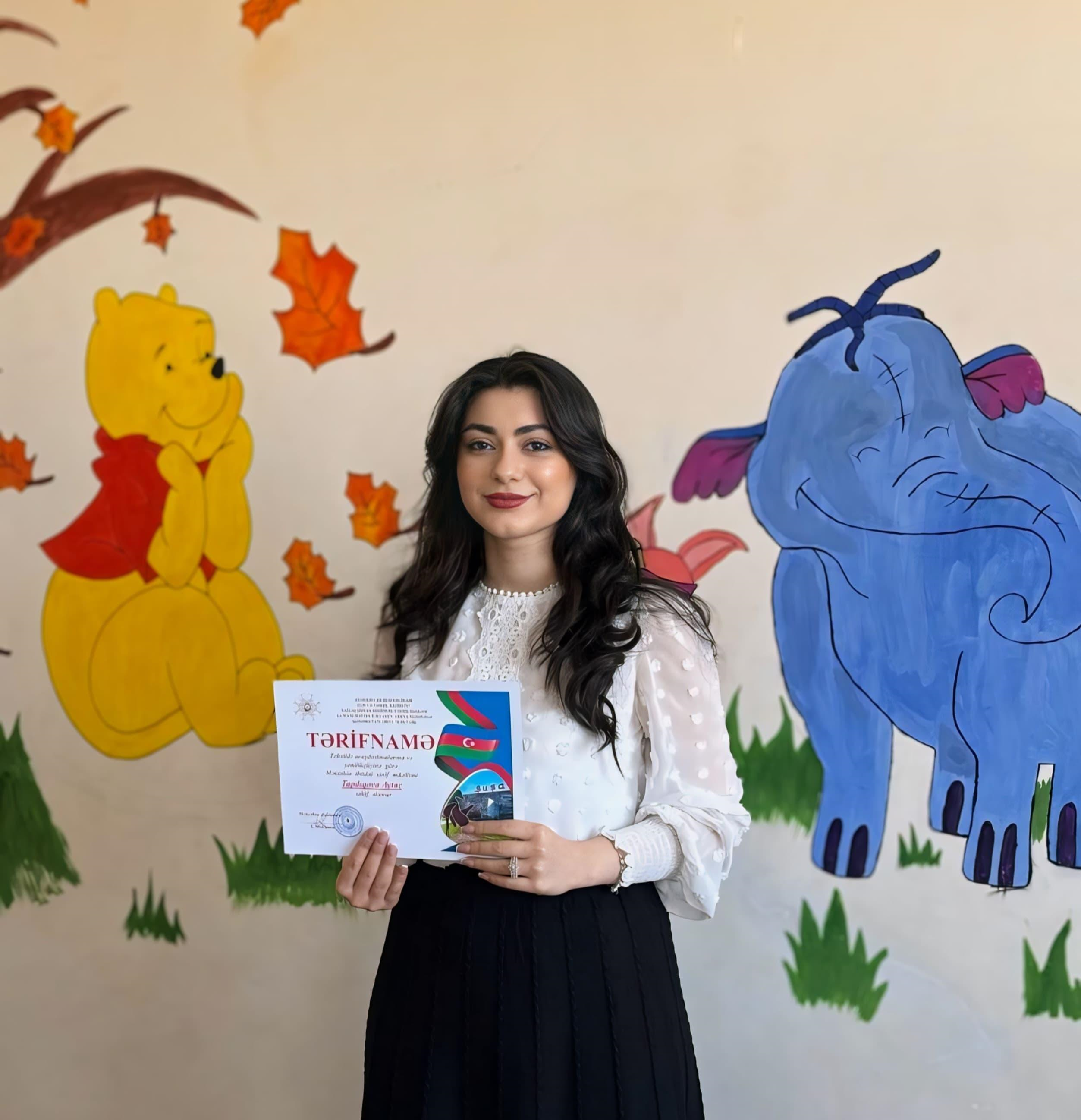 Azərbaycan Dövlət Pedaqoji Universitetinin “SABAH” qrupları fakültəsinin məzunu, Respublika əlaçısı, “STEAM”, “Sağlam təhsil-sağlam millət”, “SABAH”- VII karyera qış məktəbi və