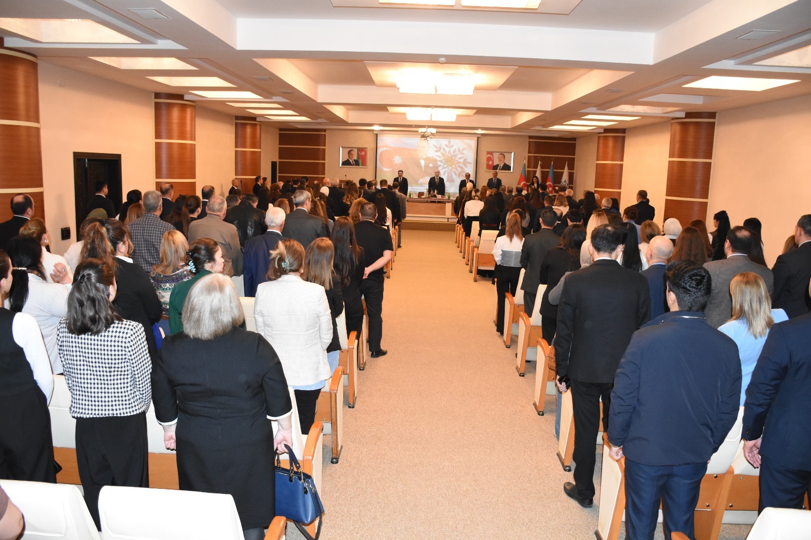 Tədbir Azərbaycan Respublikasının Dövlət Himninin səsləndirilməsi ilə başlayıb. Ardınca Ümummilli Lider Heydər Əliyevin və Azərbaycanın müstəqilliyi və ərazi bütövlüyü uğrunda canlarından keçmiş şəhidlərin əziz xatirəsi bir dəqiqəlik sükutla yad edilib.